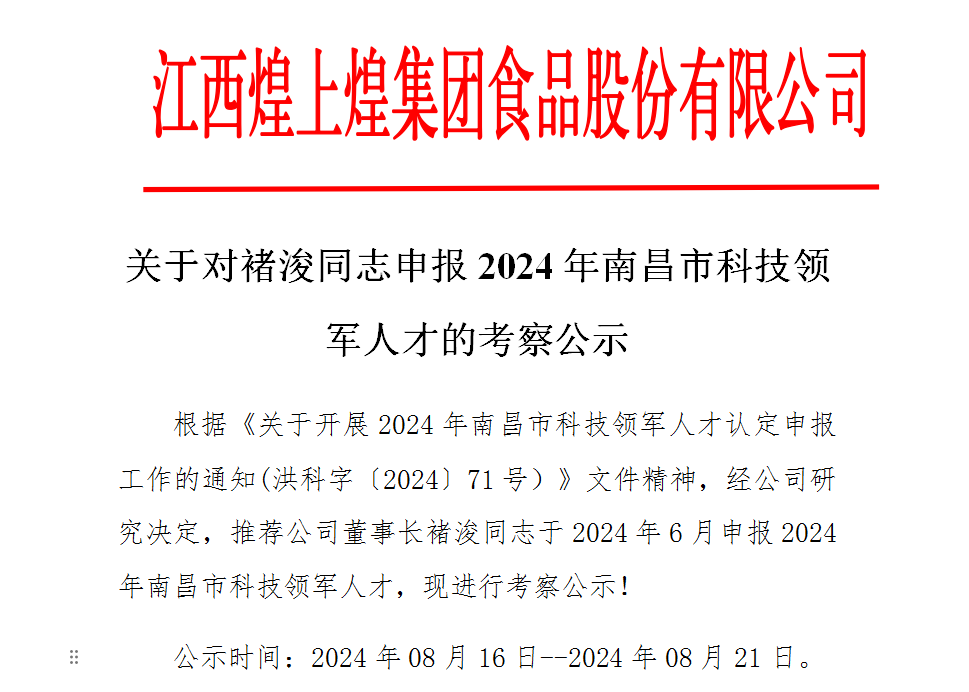 關于對褚浚同志申報2024年南昌市科技領軍人才的考察公示根據《關于開展2024年南昌市科技領軍人才認定申報工作的通知(洪科字〔2024〕71號)...