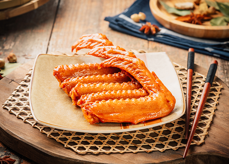 產(chǎn)品介紹:鴨翅皮下脂肪適中,肌肉細(xì)嫩,吸收20多味香料的鹵湯,香氣飽滿、濃郁,外皮綿軟,肌肉脆嫩,鹵汁浸入骨頭之中,食后美感久久不去。產(chǎn)品分清香、微辣、重辣三種,適合不同嗜辣消費(fèi)群體。香鹵鴨翅是煌上煌的重點(diǎn)暢銷的產(chǎn)品之一,是公司的招牌產(chǎn)品,也稱為招牌鴨翅。
