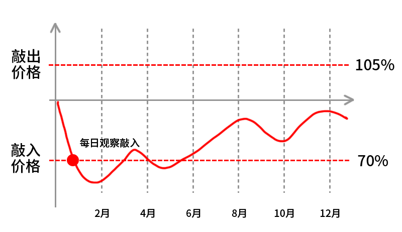 敲入事件 | 任一敲入觀察日收盤(pán)價(jià)低于敲入價(jià)格 |