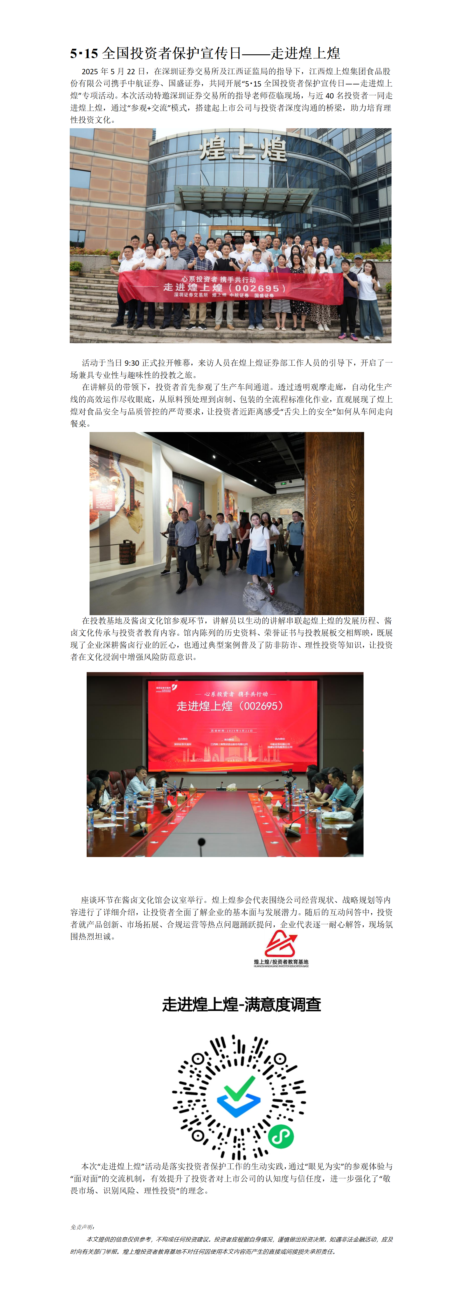5?15全國投資者保護(hù)宣傳日——走進(jìn)煌上煌
